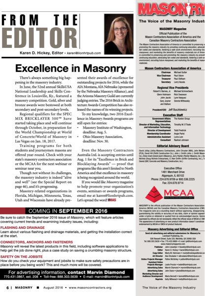 Be sure to catch the September 2016 issue of Masonry, which will feature articles covering current trends and examining industry issues, including: