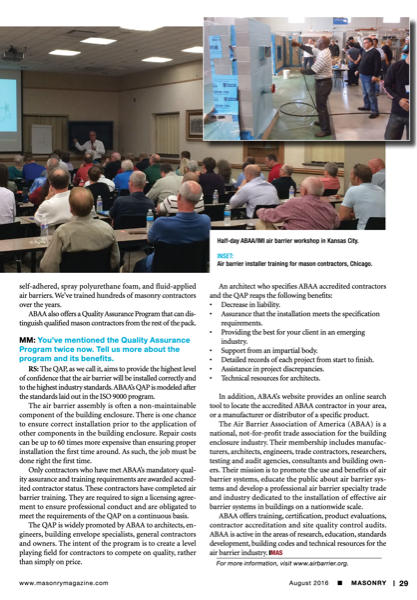 self-adhered, spray polyurethane foam, and fluid-applied air barriers. We've trained hundreds ofmasonry contractors over the years.