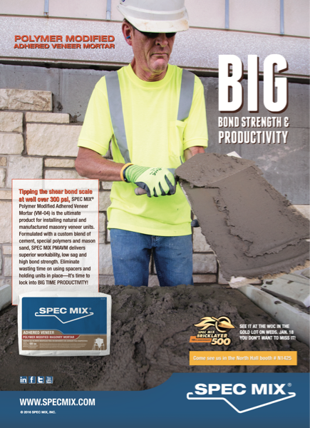 at well ovar 300 psi, SPEC MIX� Polymer Modified Adhered Veneer Mortar (VM-04) is the ultimate product for installing natural and manufactured masonry veneer units. Formulated with a custom blend of cement, special polymers and mason sand, SPEC MIX PMAVM delivers superior workability, low sag and high bond strength. Eliminate wasting time on using spacers and holding units in place-It's time to lock into BIG TIME PRODUCTIVITY!