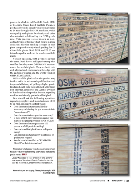 MSR scaffold plank takes the grade a step further with its advanced qualification and improved efficiency of pulling a higher grade. Readers should note the published letter from Bob Browder, director ofthe Lumber Division ofSouthern Pine Inspection Bureau, regarding machine and visually graded scaffold plank.