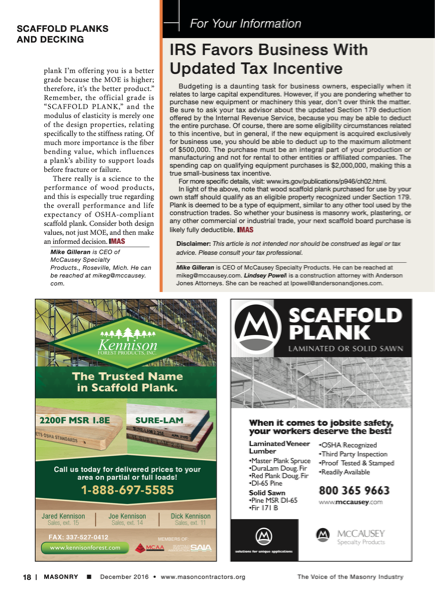 18 I MASONRY � December 2016 � www.masoncontractors.org