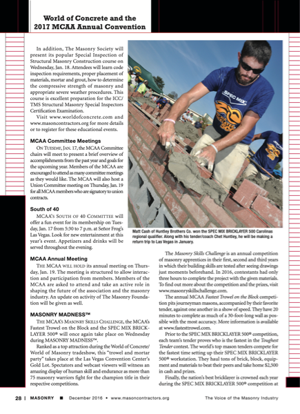 28 I MASONRY � December 2016 � www.masoncontractors.org The Voice of the Masonry Industry