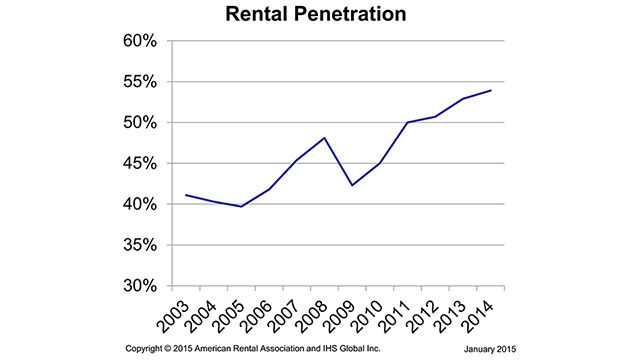 The Construction/Industrial rental penetration is up 100 basis points in 2014 to 53.9% for the most recent reporting year according to the ARA Rental Penetration Index™.