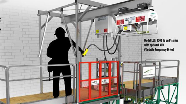 LEO hoist mounted on Hydro Mobile mast-climbing work platform. Image courtesy of Hydro Mobile.