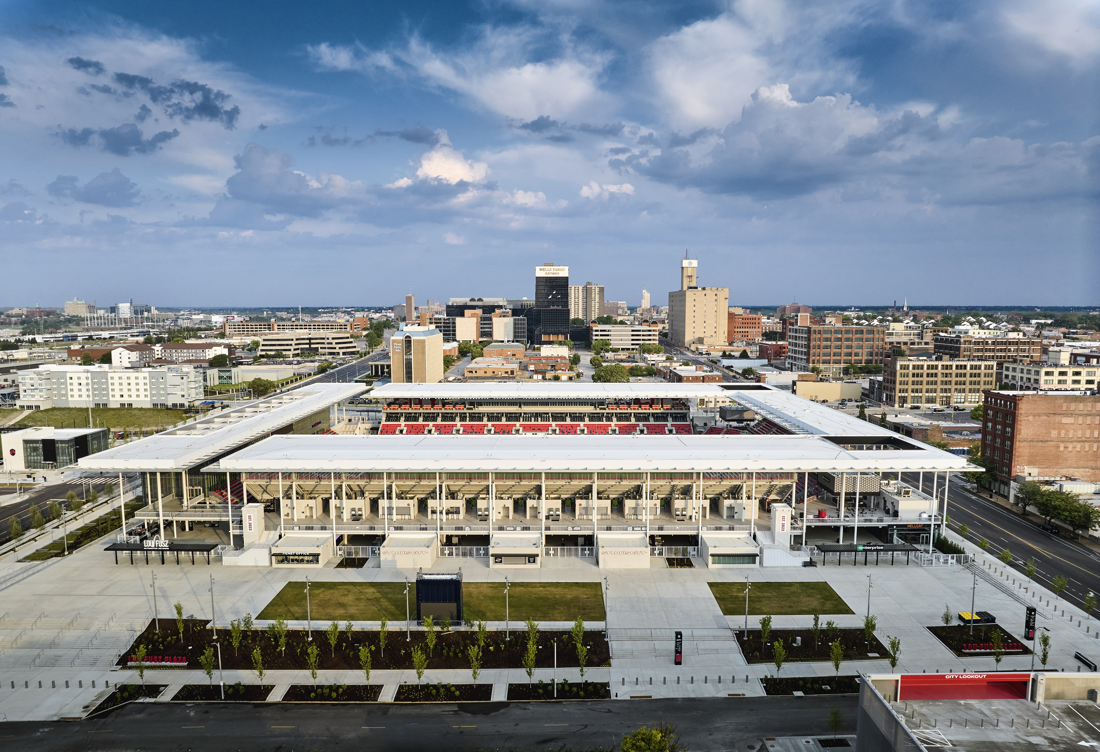 Completed in Fall ahead of the 2023 Major League Soccer season, CITYPARK St. Louis is a state-of-the-art, soccer-specific stadium in the heart of St. Louis, Missouri. The new stadium features geometric lines and unique masonry, creating a contemporary yet timeless design. Led by HOK Group Inc., the architect of record in collaboration with Snow Kreilich Architects of Minneapolis, Minnesota, the project achieved its construction goals and aligned with the vibrant soccer culture in St. Louis.