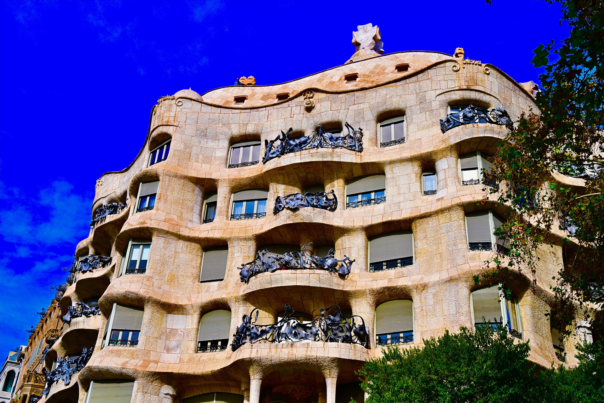 Casa Milà, also known as La Pedrera, was designed by Antoni Gaudí and built between 1906 and 1912 in Barcelona, Spain. This modernist masterpiece features an undulating limestone façade, resembling a natural rock formation. Gaudí pioneered structural innovations, including a self-supporting stone exterior and an open-plan interior with no load-bearing walls. The rough-hewn stonework and organic curves reflect his biomimetic approach. Casa Milà’s masonry techniques, combining traditional Catalan craftsmanship with avant-garde engineering, make it a landmark of early 20th-century architecture, influencing modern design and reinforcing Gaudí’s legacy in structural artistry and natural aesthetics.