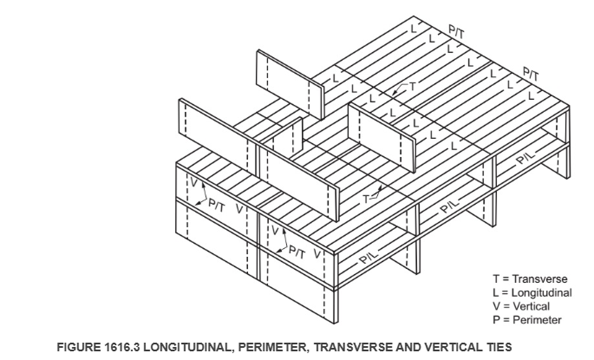 Figure 1616.3 is taken from the IBC regarding structural integrity. The perimeter ties are shown as P/T and P/L. Although not specifically stated, continuity implie that the ties are continuous through the corners. The perimeter ties can be included within the perimeter walls thereby also serving as masonry diaphragm chords.