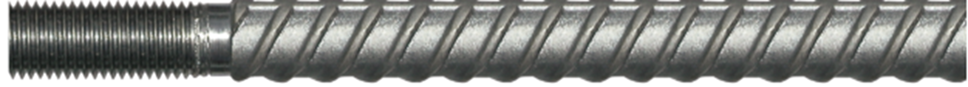 Figure 8 shows a threaded reinforcing bar (Williams Form Engineering) that uses a standard low-profile coupler. The threading operation reduces the net area. Be sure to get the rating of the bar with the coupler.