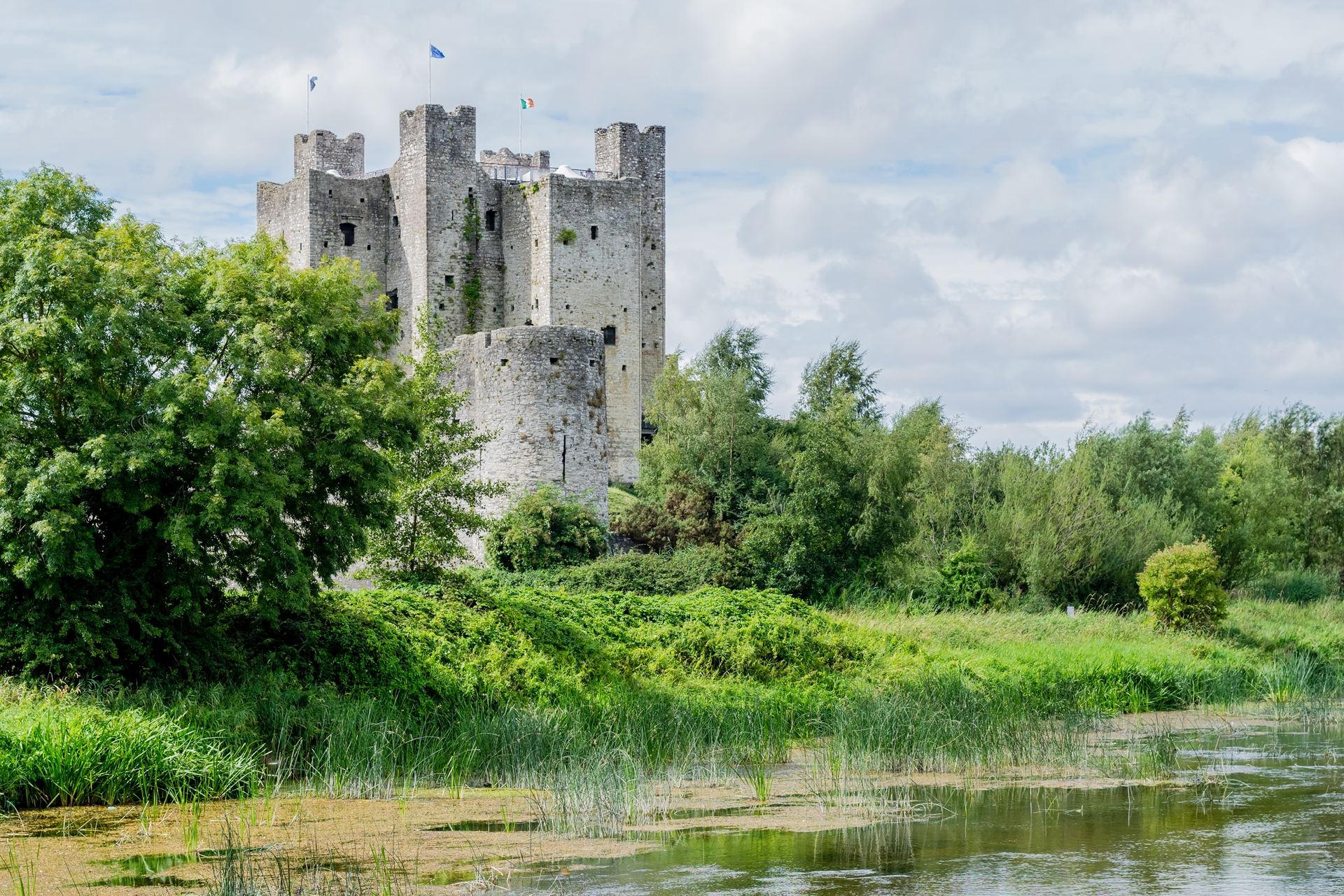 Trim Castle in County Meath, Ireland, was begun in the late twelfth century by Hugh de Lacy as a major Norman stronghold. Constructed primarily between the 1170s and early thirteenth century, it is the largest Anglo-Norman castle in Ireland. Its masonry significance lies in its massive limestone construction, finely cut ashlar blocks, and innovative cruciform keep, rare for the period. The carefully dressed stone walls, deep curtain defenses, and robust towers demonstrate Norman military engineering and authority. Trim’s masonry conveys permanence, power, and control, reflecting the strategic and political importance of stone fortification in medieval conquest and governance.