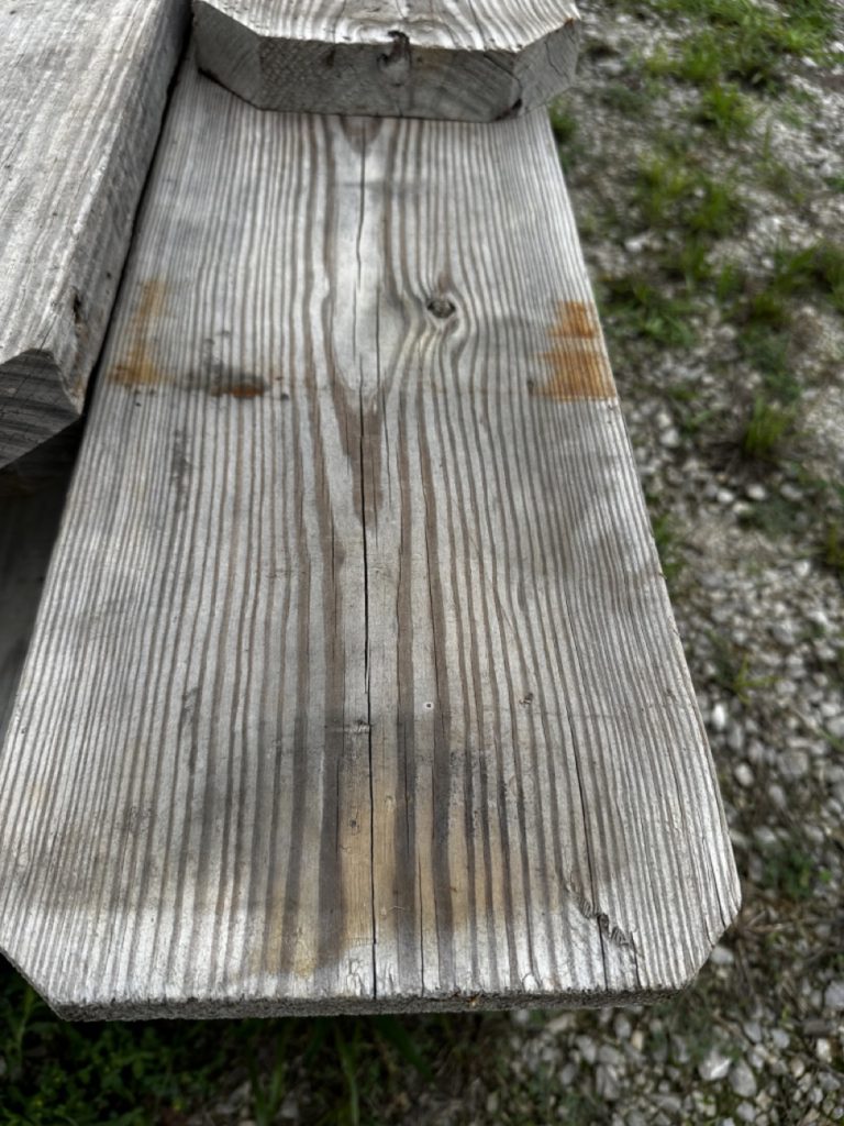 Scaffold plank is a huge issue. It is the primary cause of injuries to workers due to scaffolding accidents. There are lots of other forms, but scaffold plank is still the primary work platform surface in the masonry industry. I don’t know why people look at a board and scratch their head whether it is good enough to use. This is one of those instances, when in doubt, throw it out (or make it a mud sill)! I knew of a superintendent on a job site that fell 40’ when the scaffold plank he was standing on broke in half. There was no other weight on the scaffold plank, just the superintendent. How bad does a scaffold plank have to be that you can’t even stand on it? Some requirements when inspecting boards: