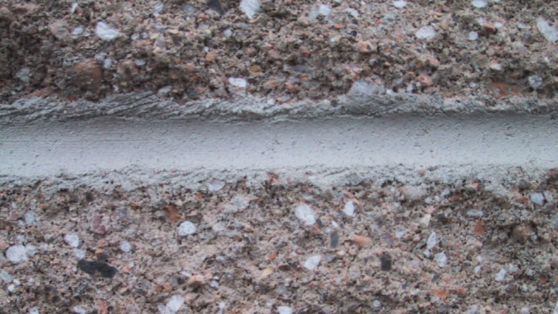 Properly cleaned joint, with cement paste and striking lines remaining at the joint face.