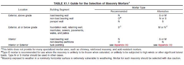 - Type S mortar is the recommended mortar type for below-grade applications if conditions are unknown.