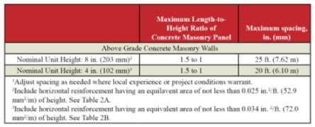 Table 3 – NCMA TEK 10-03 (Courtesy of Concrete Masonry and Hardscape Association)