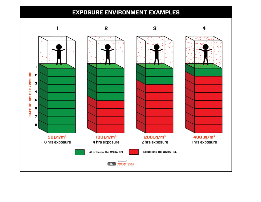 Once you learn about exposure levels, you can decide what options are best suited to control silica exposure on your job sites or in your shop.