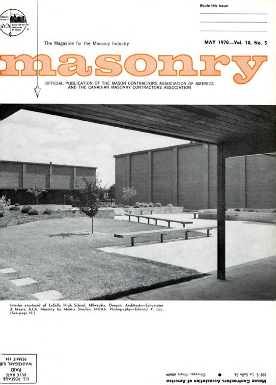 Interior courtyard of LaSalle High School, Milwaukie, Oregon, Architects-Schumaker & Mears, A.I.A. Masonry by Montie Smallen, MCAA. Photography-Edmund Y. Lee. (See page 19.)
