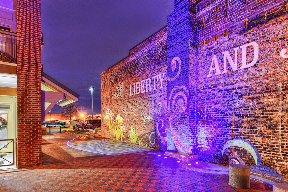 As it worked out, the project was carried out the way that a lot of business is done in a lot of different business categories these days: Instead of having all of the functions done by one individual, it was successfully completed by finding ways to collaborate across specialties, ensuring work for all involved. “Gone are the days of the Renaissance man,” said Holtzapple. “It is the age of specialization. Things are so complex that it is best for you to know your area and know who works in allied professions, so you can rely on a highly qualified team to get the job done.” How it came together The project had its beginnings in a deteriorated former Woolworth’s building, not far from the McCrory’s where the Friendship 9 sit-in took place. The Woolworth’s was built in 1916, burned in 1934 and rebuilt in 1935. By 2014, damage to the roof had left it too dilapidated to restore. A proposal to demolish the building for a mix of retail and apartments – and a public walkway connecting a parking lot to the business district – was approved. Holtzapple and Groundworks Studio held a number of public meetings to gather ideas for the project. As it turned out, some of the design was already there. Once uncovered, an exterior brick wall covered with layers of paint from past advertisements provided a backdrop to the Freedom Walkway. Some – like the word “Relieves Fatigue” – were kept as a symbolic reminder of the struggles of the Civil Rights Movement. The words “Liberty and Justice For All,” were added to the wall, from an old photograph of a protester’s sign. A chimney from the Woolworth’s building was painted dark blue, a color that has traditionally symbolized protection in the African-American community and is lighted at night, as a beacon of hope. On the ground, curving patterns of clay pavers flow through the walkway, leading visitors on a journey. The nine cylinders of gray granite represent the stools that the Friendship 9 sat on; swirling blue spiral mosaic patterns within the field of pavers represent the turbulence of the era; the boulders within the walkway represent obstacles in the path of those seeking freedom and justice. Even the patterns of the clay pavers themselves are symbolic: the running bond directs forward movement and directs visitors through the area, the basket weave is symbolic of the patterns of the baskets that the nearby Catawba Indians make. The craftsmanship at the site was carried out by Holtzapple and Juan Logan, artists; Carrie Gault, mosaics; and Sharon Dowell, who painted the mural. In all, the Freedom Walkway is a work in progress, much as the Civil Rights Movement was and is. Those involved in the project say that it shows where we have been, where we are now and where we hope to be in the future. And the meaning of this place, the reversal of an earlier conviction in light of attitudes that have changed over five decades, echoes a speech given by an unknown slave preacher, which was quoted by Rev. Martin Luther King Jr. in 1962. King himself said the comments weren’t grammatically correct but were profound. They were: "Lord, we ain't what we oughta be. We ain't what we want to be. We ain't what we gonna be. But, thank God, we ain't what we was." The author, Walt Steele, is paver business manager for Pine Hall Brick Company, America’s largest manufacturer of genuine clay pavers. For more information, Steele can be reached at (800) 334-8689 and by email at waltsteele@pinehallbrick.com. For more information, please visit www.PineHallBrick.com Rock Hill's Freedom Walkway was supported by grants from the National Endowment of the Arts, the Arts Council of York County and the Barre Mitchell Community Initiatives Fund. It was awarded a 2017 ASLA Southeast Merit Design Award and a 2017 Cultural Diversity Award by the National League of Cities. Watch a video of the project's process here: https://youtu.be/LfpcyjkNVcE