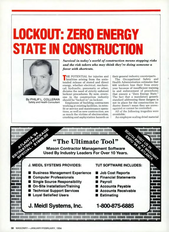 The Occupational Safety and Health Administration estimates that 600 workers lose their lives every year because of insufficient training in and enforcement of procedures that ensure a "Zero Energy State." The fact that a mandatory generic standard addressing these dangers is not in place for the construction industry doesn't mean they are unrecognized or cannot be controlled. All of the following tragedies were avoidable: An employee scaling dried material