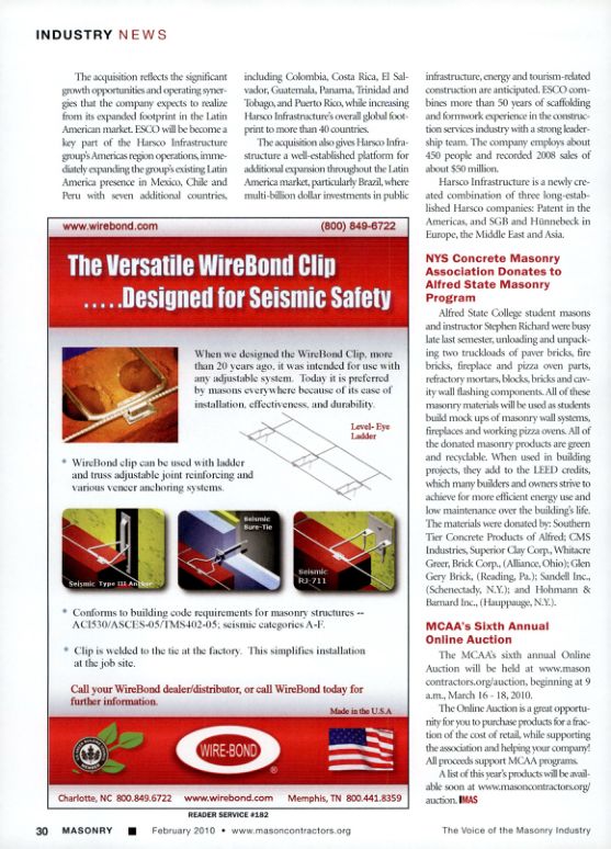 The MCAA's sixth annual Online Auction will be held at www.masoncontractors.org/auction, beginning at 9 a.m., March 16-18, 2010.
