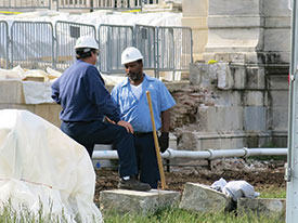 In May, I had the rare opportunity to tour the exterior of the U.S. Capitol building with Mary Oehrlein, FAIA, LEED AP, historic preservation officer, Architect of the Capitol in Washington, D.C., to view several different restoration projects currently underway. The tour provided as much a history lesson as an update (see vintage images).