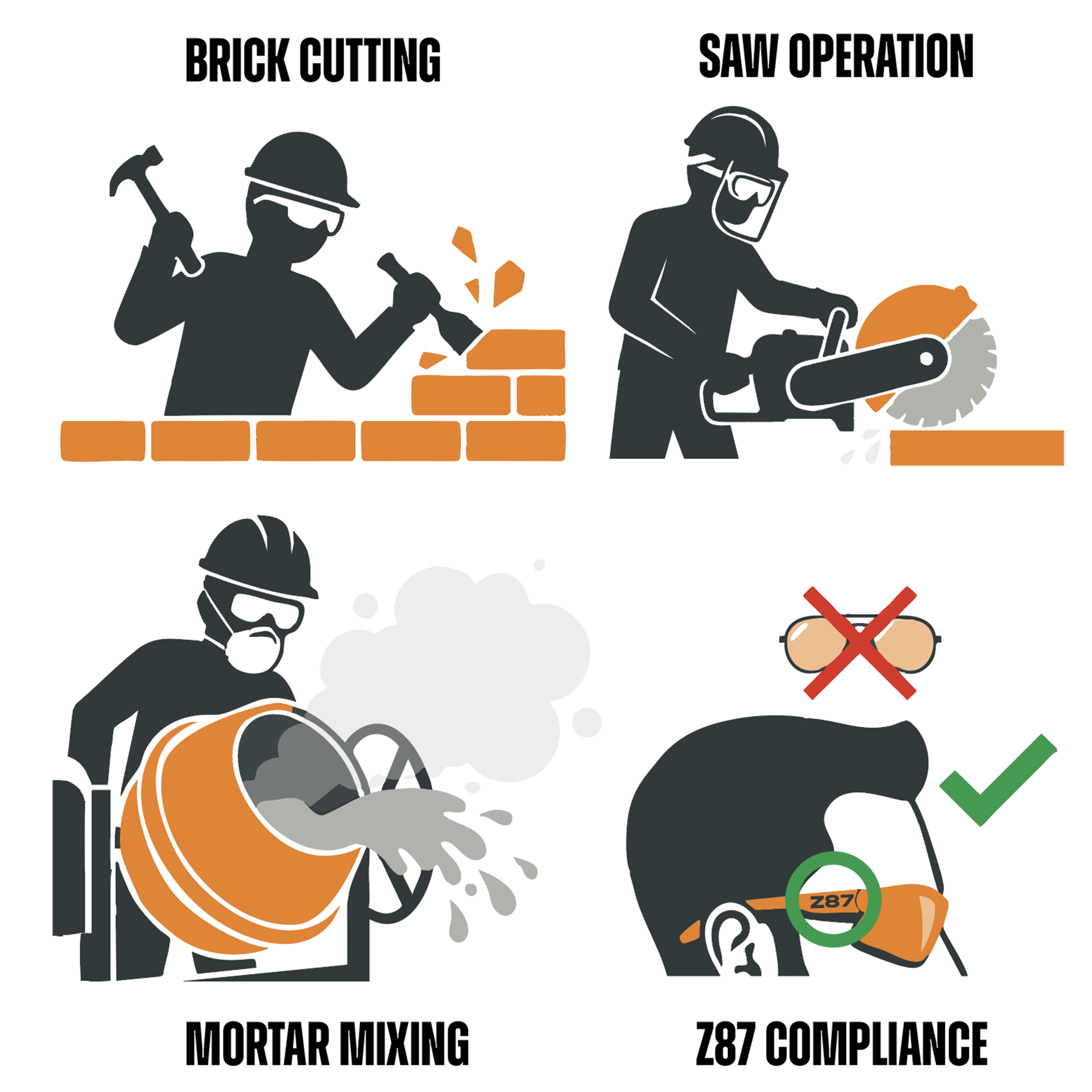 There are few stereotypes more iconic than the image of a construction worker wearing a hard hat and safety glasses. Protective glasses are among the most common items worn by workers in the masonry field, second only to the hard hat. According to OSHA, w
