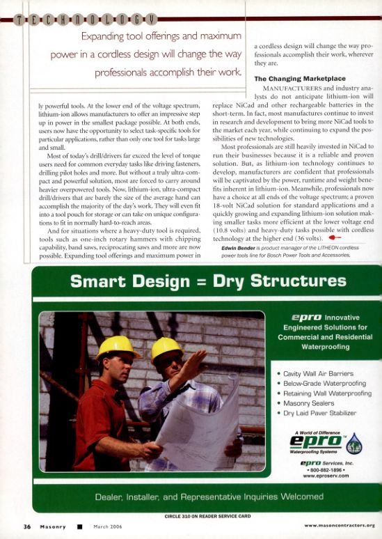TECHNOLOGYExpanding tool offerings and maximum power in a cordless design will change the way professionals accomplish their work.ly powerful tools. At the lower end of the voltage spectrum, lithium-ion allows manufacturers to offer an im