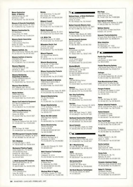 Mason ContractorsAssoc. of America1550 Spring Road, St. 320Oak Brook, IL 60521Ph: 630.782.6767 Fax: 630.782.6786 Masonry & Concrete Consultants5211 Berry Creek, Houston, TX 77017Ph: 713.944.9716 Fax