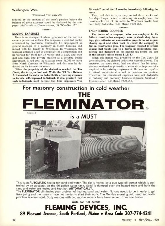 Washington Wire(Continued from page 23)reduced by the amount of the aunt's pension before the balance of these expenses could be deducted by the taxpayer. McDermid v. Commissioner, 54 TC-No. 172. MOVING EXPENSESHere is an example