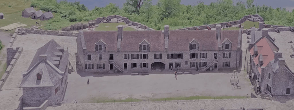In 1755, the French established an outpost of log work called Fort Vaudreuil. As the site grew in strategic importance, they designed and built Fort Carillon from 1755-1757 to defend against the British who controlled the south. It was the military key to the Champlain Valley.