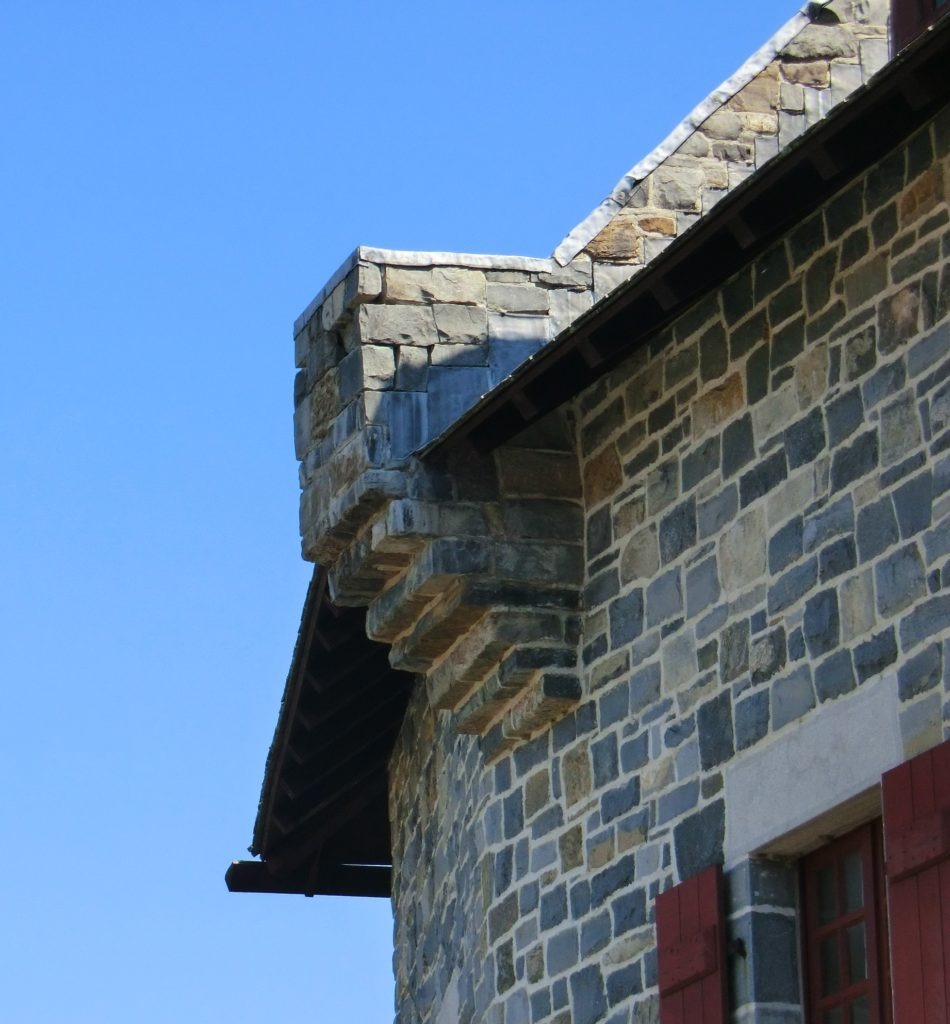 Looking at the fort as a whole is impressive. However, there are subtle details that truly make the masonry marvelous! One example is the corbelling. Figure 17 is a dormer on the West Barracks. Figure 18 is the southwest corner of the South Barracks with corbelling on the end wall and the dormer. The craftsmanship of the stonework is excellent; the corbel overhangs exceed the current industry standards for masonry construction and are performing perfectly.