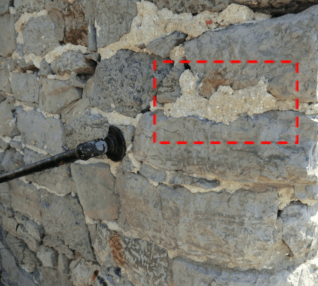 Since the reconstruction in 1909, the mortar has generally been Portland cement-based Type N for better durability; it is usually grey in appearance.