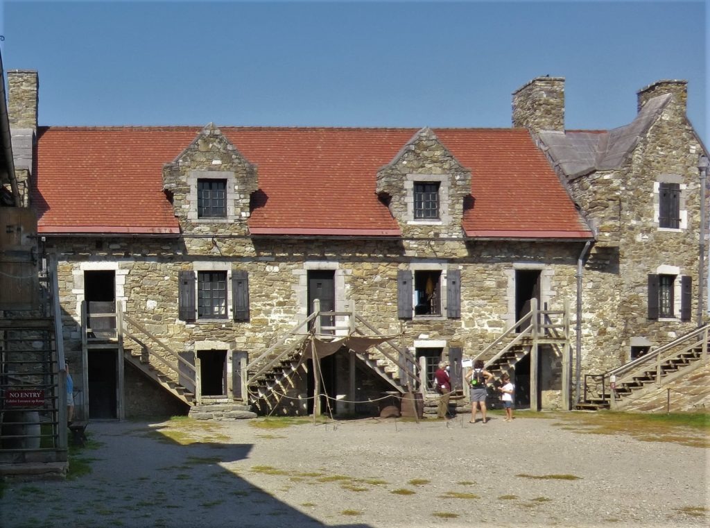 The 1909 restoration was developed by a British architect so the fort presents itself primarily as a British fort since. However, in 2008, The Deborah Clarke Mars Education Center was opened. It sits on the original site of the French Magazin du Roi, better translated as the “King’s Storehouse”. The building was designed by architect Andrew Wright of Tonetti Associates (now Starboard Architects). One floor plan of the original second-story survives at the New York Historical Society and was used to inform the foot-print of the reconstruction. The overall architecture is French-inspired (Figures 13 and 14) based upon other fortifications of the period.