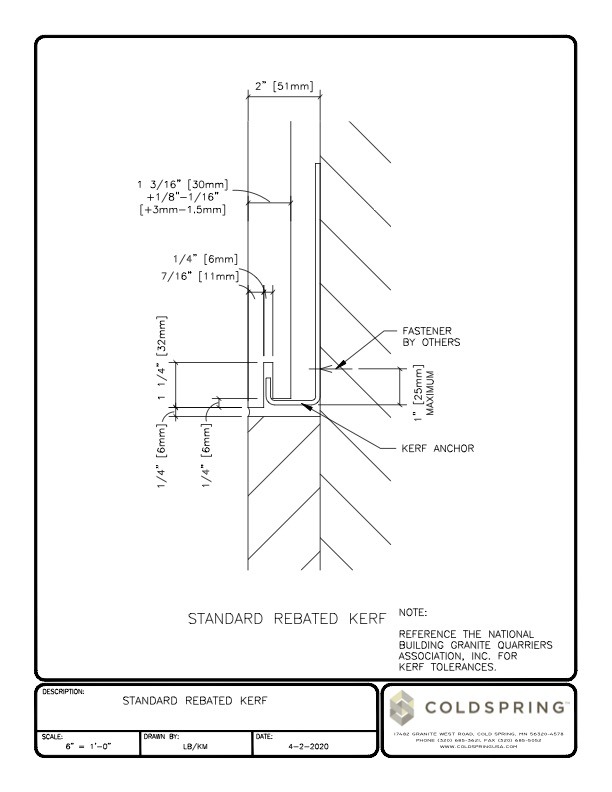 One of the design team’s primary concerns with anchors for a rainscreen system is keeping them unexposed. The two most common hanging methods include a track-type system and a rebated kerf design to provide the seamless appearance of unexposed anchors with the strength required to hold granite in place in a rainscreen securely.