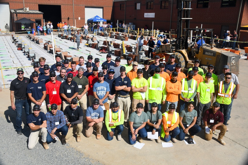 Contestants and committee members gather for a picture just prior to the NCMCA Annual Samuel A. McGee Memorial Masonry Apprentice Skills Contest in May. Photo by NCMCA