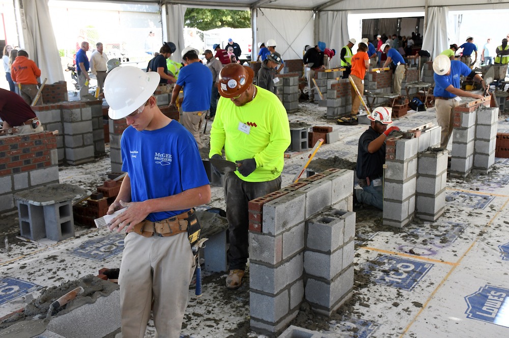 Contestants participate in the 66th Annual North Carolina State Fair Masonry Apprentice Skills Contest in October at Raleigh. Photo by NCMCA