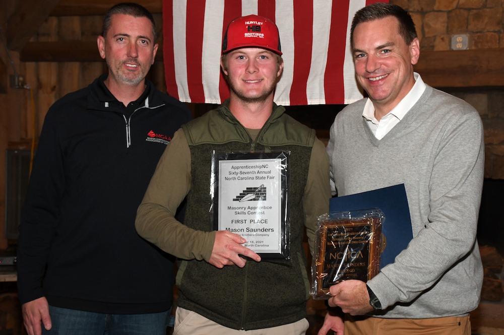Grant Helms of Helms Masonry won the 2021 Sam McGee Contest and went on to win the June 2021 MCAA Skills Challenge, Third Year Division, in Las Vegas. The second-place finisher in the 2021 McGee Contest, Mason Saunders of Huntley Brothers Company, won the October 66th Annual North Carolina State Fair Masonry Apprentice Skills Contest (a three-hour project,), which qualified Mason to represent North Carolina in the 2022 MCAA Las Vegas Skills Competition.